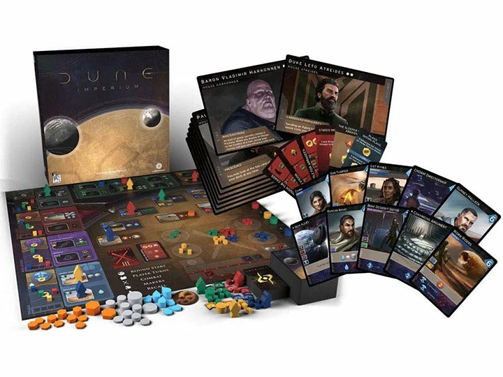 Raise your banner above the vast wasteland before you. As the Great Houses of the Landsraad marshal their forces and their spies, whom will you influence, and whom will you betray? A tyrannical Emperor. The secretive Bene Gesserit. The shrewd Spacing Guild. The ferocious Fremen of the Deep Desert.