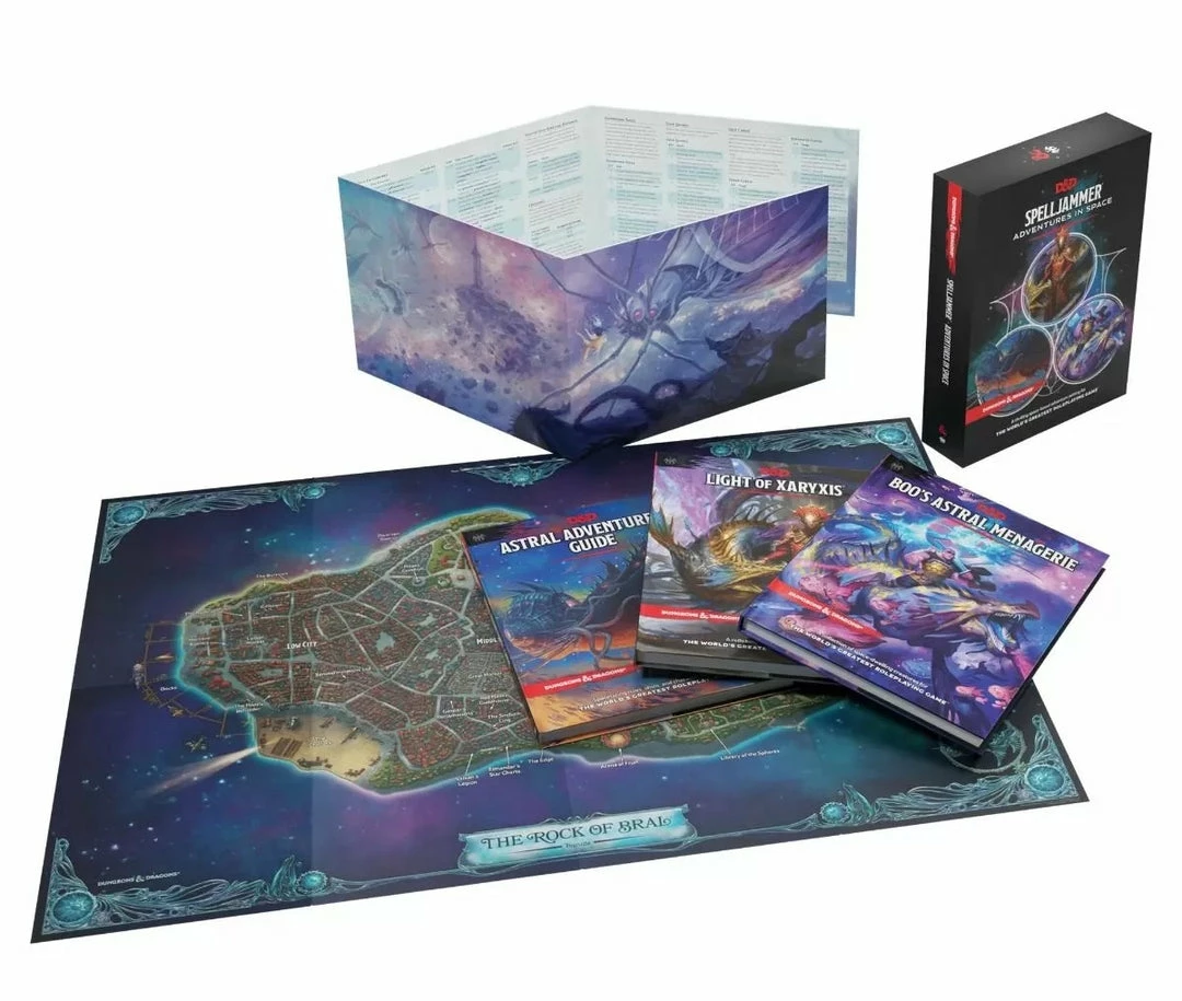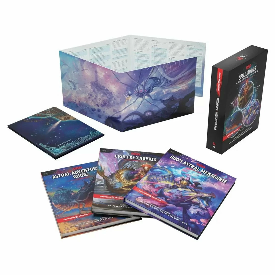 - The Astral Adventurer’s Guide—64-page hardcover book presenting the Astral Plane as a campaign setting, including space-based character options, spells, magic items, spacefaring rules, ships, and more