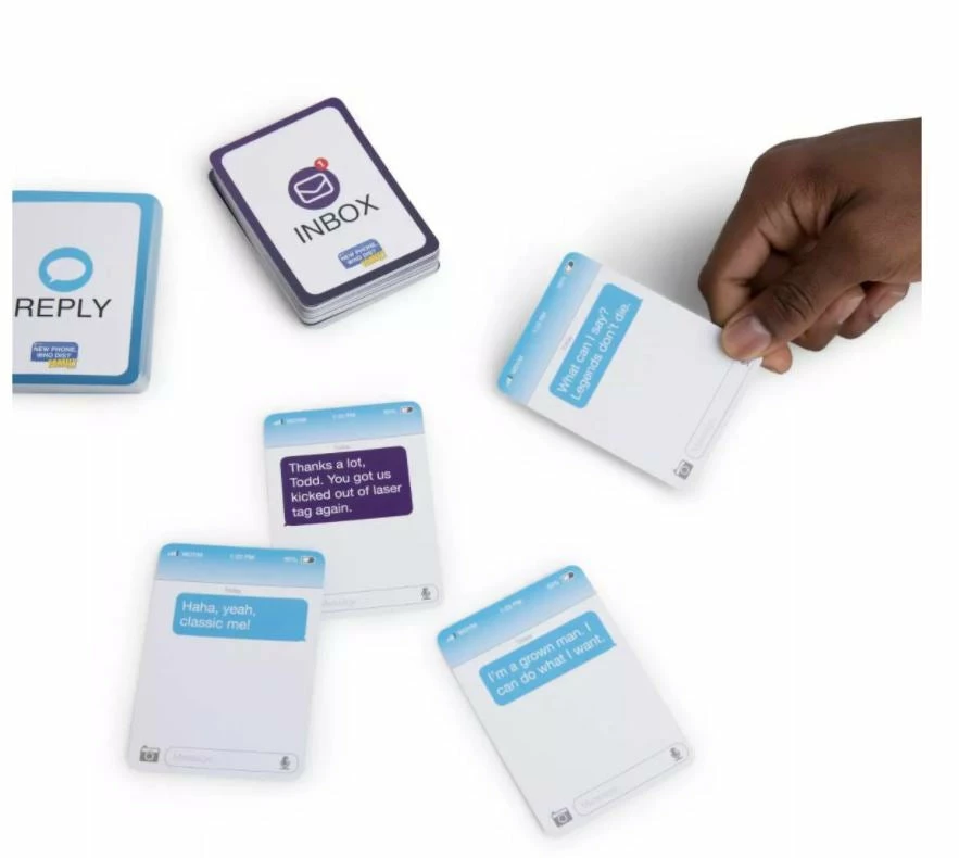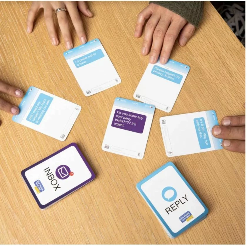 How To Play: Players rotate drawing a sent (or “inbox”) card while the rest of the group competes to play the funniest “reply” card. Once everyone has played their chosen reply card, the rotating judge awards a point to the funniest one.