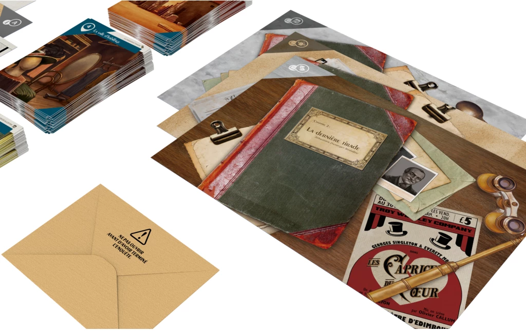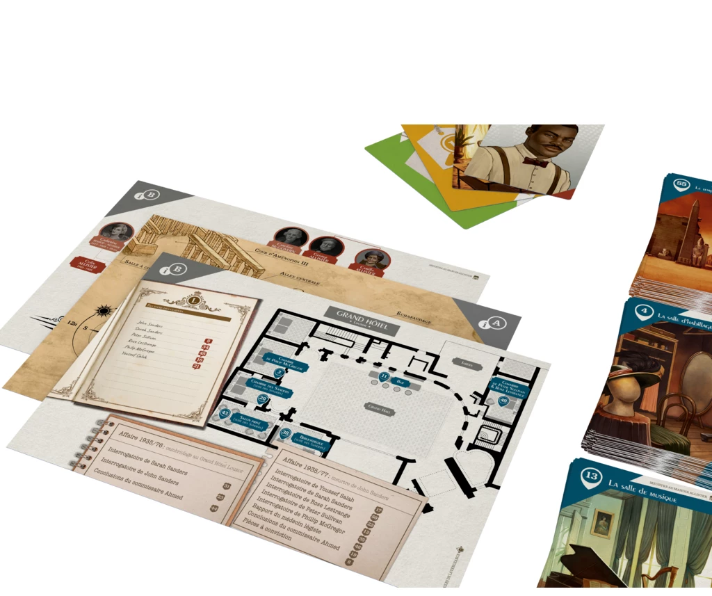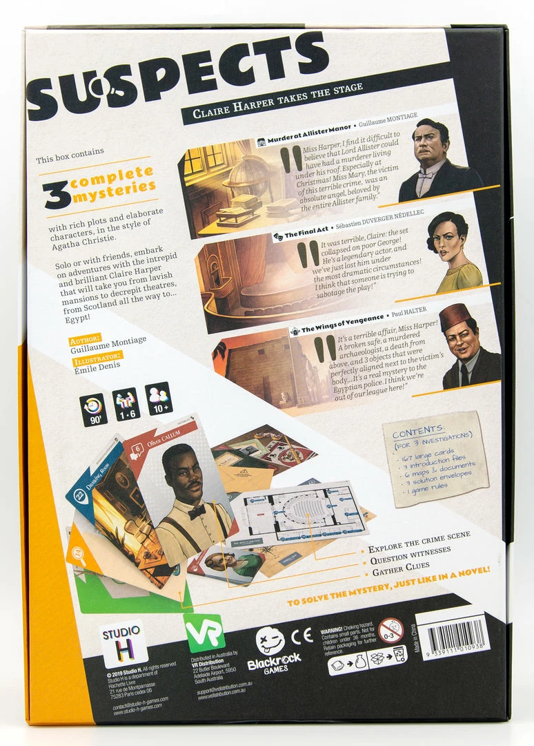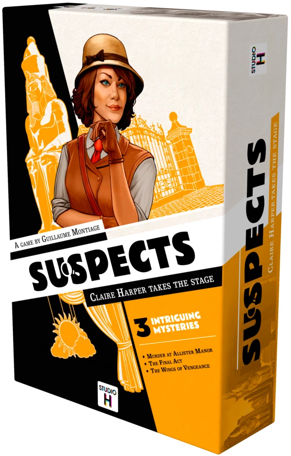 Suspects is a range of investigation games with streamlined rules and plots centred on the psychology of the characters in the style of Agatha Christie’s novels. The first opus, will feature the ingenious and fearless Claire Harper in three stories paying tribute to the great classics of detective literature!