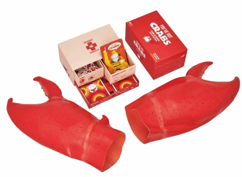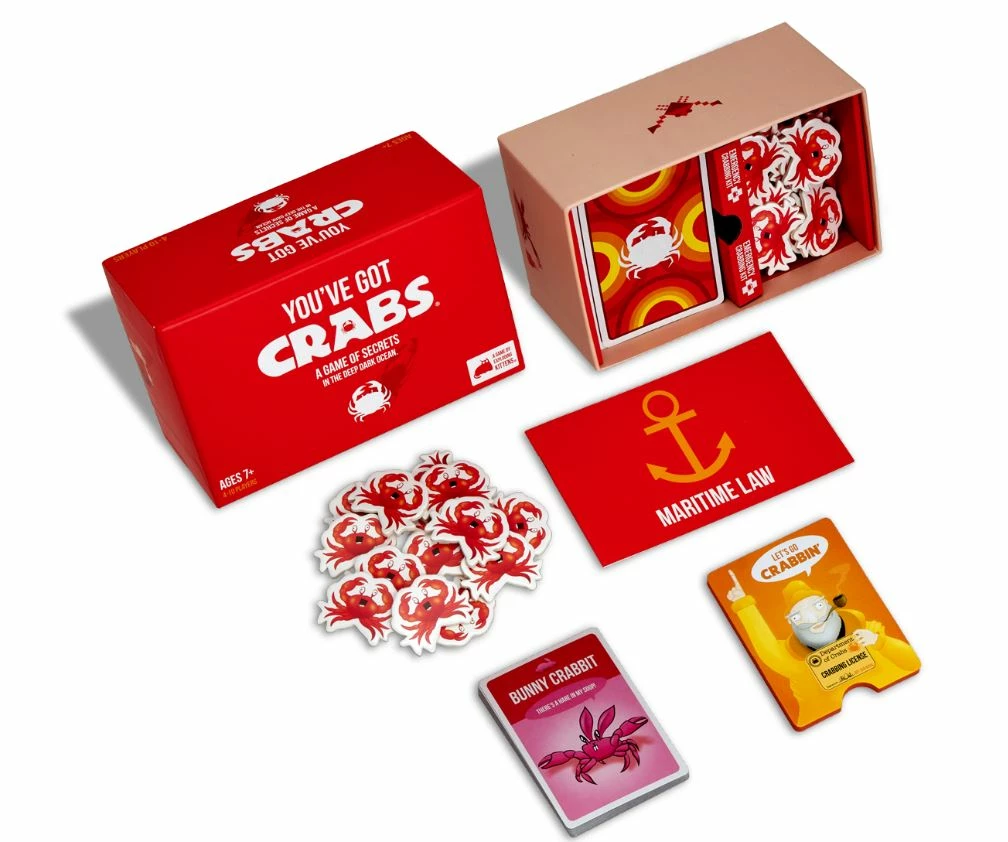 When you have 4 of the same Crab Card, you can’t say anything out loud. Instead, when you’re ready, give your secret signal to your teammate. When they notice, they will point at you and shout, ‘YOU’VE GOT CRABS!’